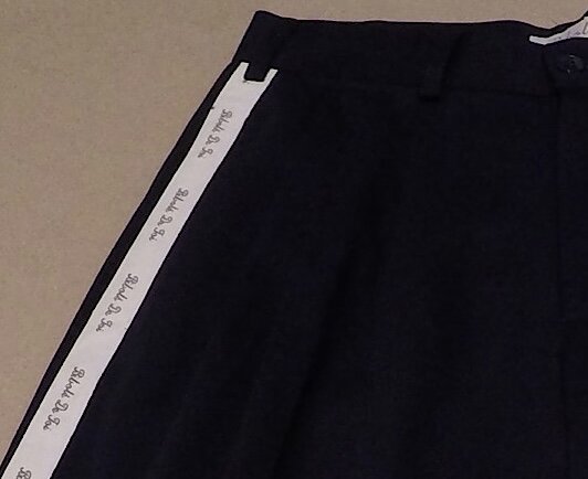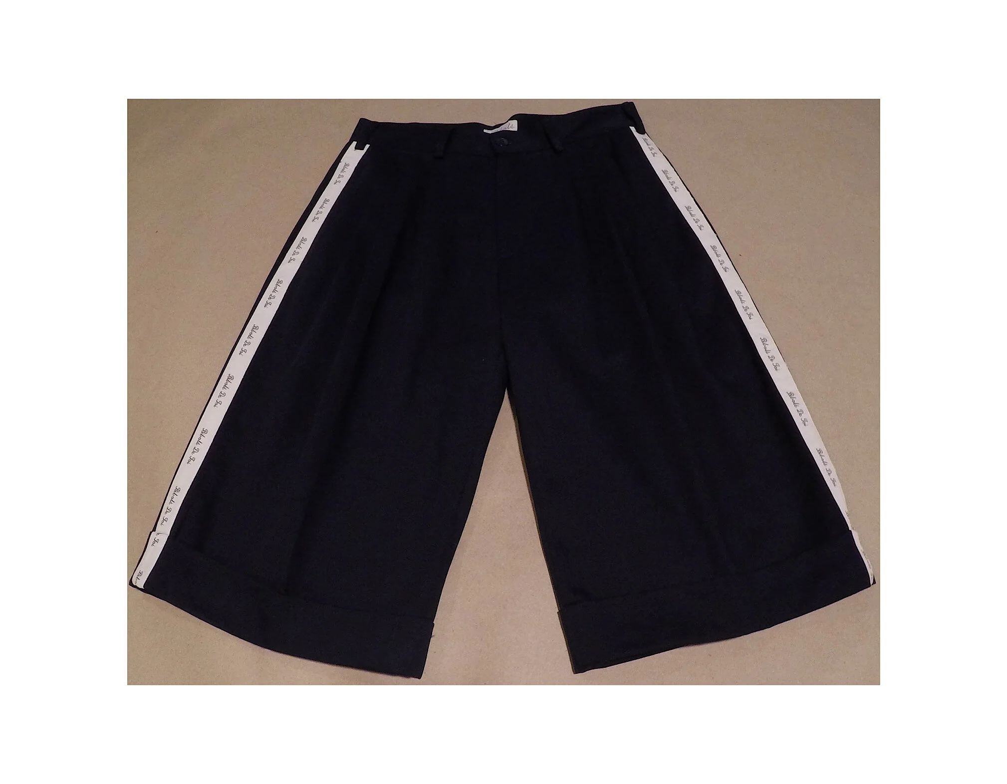 The navy wide-leg pants are part of the School Life collection, as seen on the fashion presentation The Odyssey of Bibolé: The Origins. Crafted in cotton, the pleated pants are oversized and they include a band on both sides with Bibolé De Toi signature. They can be worn with the white shirt to complete the uniform look.